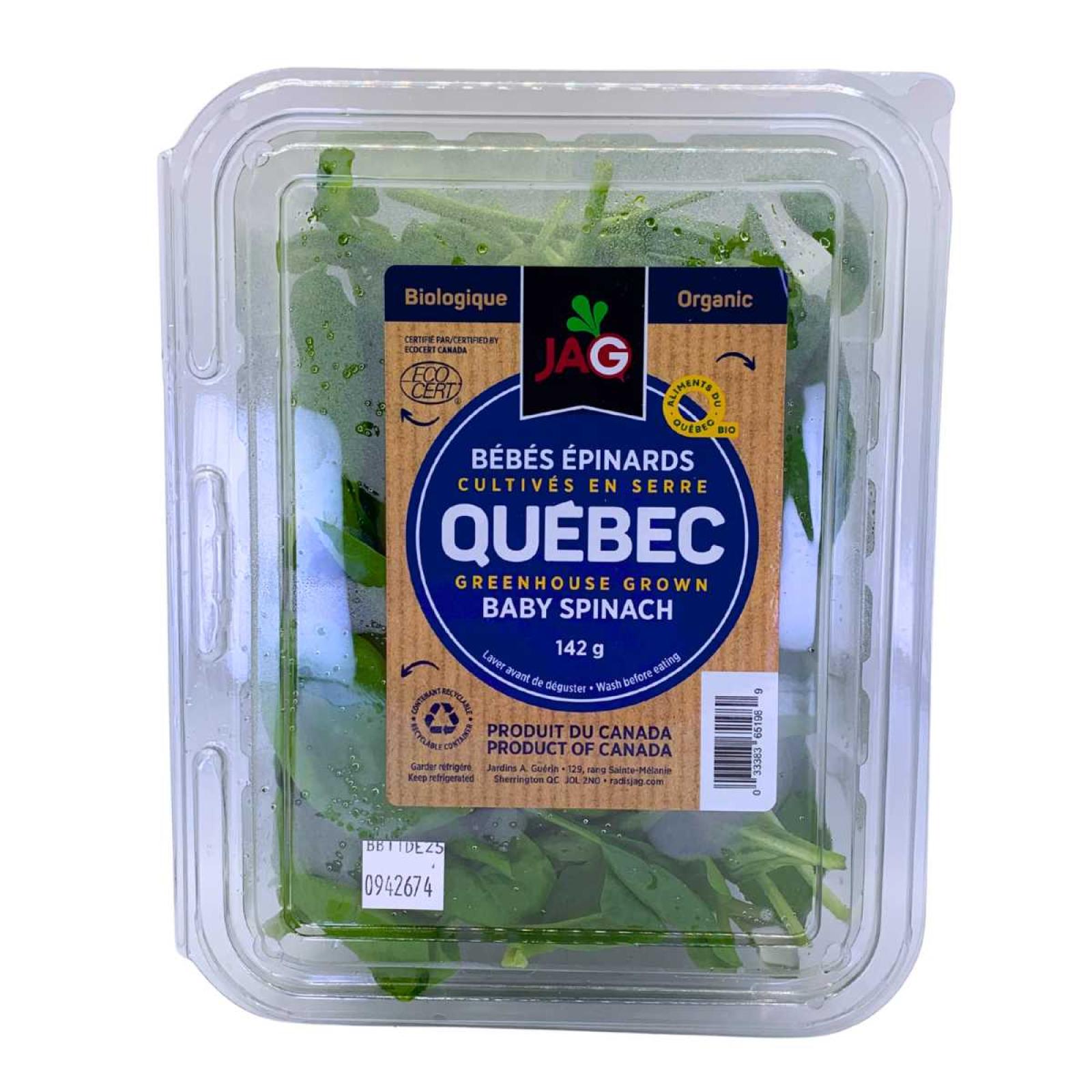 Producteur québécois en serre, JAG offre des bébés épinards bio, uniformes et ultra-frais, parfaits pour passer du frigo à l’assiette sans complication — une façon simple d’ajouter du vert nourrissant à vos repas de semaine.