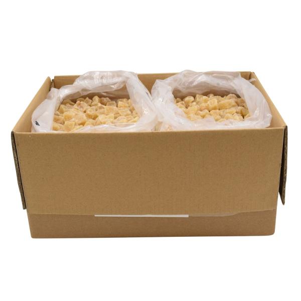 Des dés de gingembre biologique confits et enrobés de sucre de cane biologique sont une friandise sucrée, épicée et tendre! Confits lentement jusqu'à ce que le gingembre frais naturel soit ramolli, le gingembre biologique en dés est ensuite préservé dans du sucre de cane. Tendre, moelleux et sirupeux, le gingembre en dés est idéal pour vos pâtisseries; apportant un croquant épicé et sucré à vos biscuits, gâteaux et plus encore!