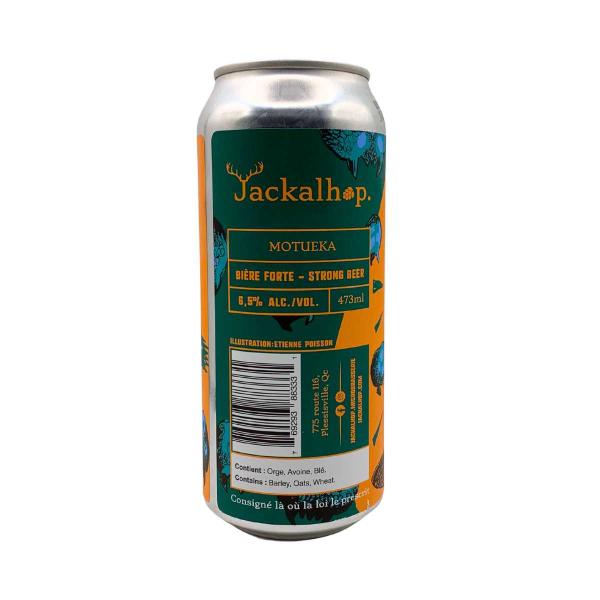 Microbrasserie Jackalhop (Plessisville, Centre-du-Québec) : brasserie indépendante spécialisée dans les houblons modernes. Leur série Humanoïde explore un houblon à la fois pour mieux révéler son profil — une démarche pédagogique et gourmande qui cadre avec nos valeurs : créativité locale, transparence sur les ingrédients et fraîcheur. Illustration de la canette signée Étienne Poisson.