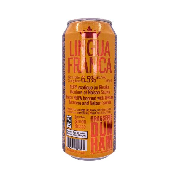 Brassée à Dunham, MRC Brome-Missisquoi, Montérégie, la brasserie éponyme défend depuis des années une esthétique très locale (collabs avec des artistes, ancrage nature) tout en explorant des styles contemporains. « Lingua Franca » évoque cette langue commune des amateurs de IPA juteuses qui a uni la scène artisanale, du Vermont à la Montérégie.