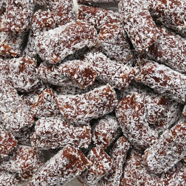 Pâte de dattes, flocons de noix de coco râpée (biologique).