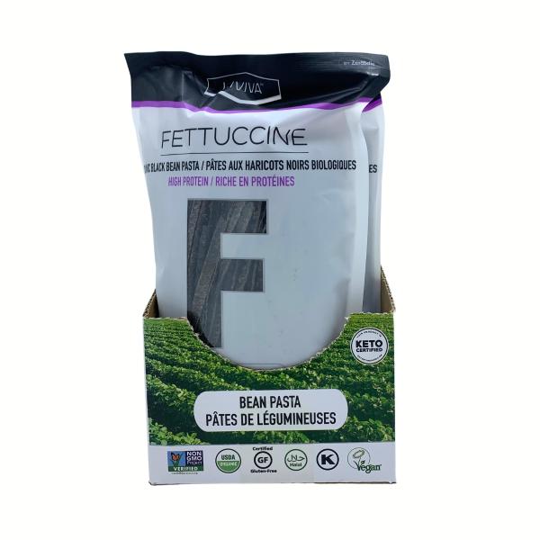 Ce fettuccine est composé uniquement de deux ingrédients simples : des haricots noirs 100 % biologiques et de l’eau. Sans OGM, sans gluten, sans additifs ni conservateurs, il est certifié Halal et Kasher. Il s’intègre aisément à de nombreux régimes alimentaires : végétalien, sans gluten, cétogène ou faible en glucides. - UNE SOURCE ÉLEVÉE DE PROTÉINES ET DE FIBRES