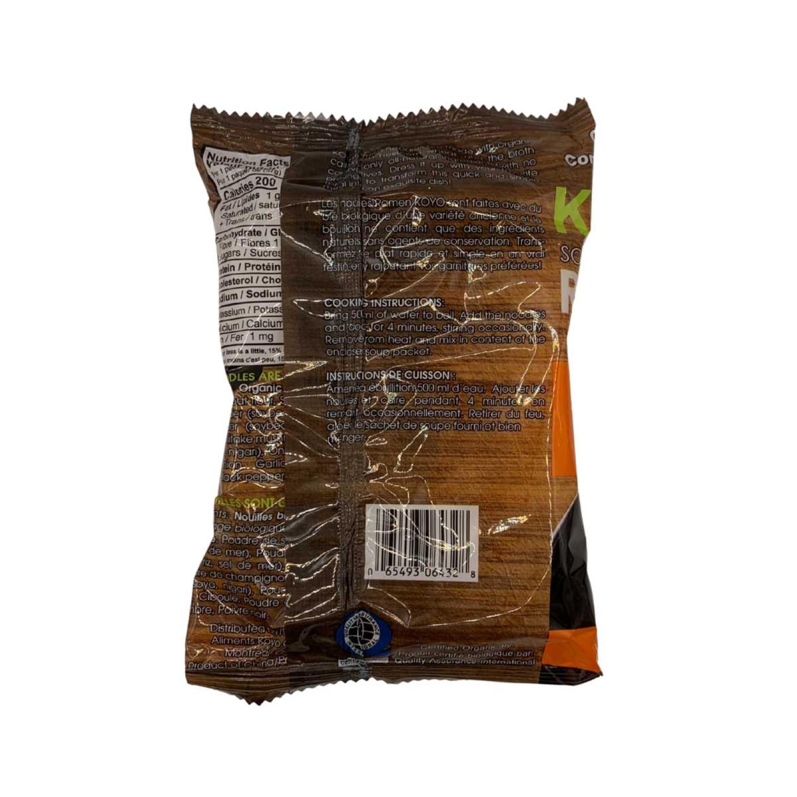 Un bol réconfortant, prêt en 4 minutes ! KOYO Ramen Tofu & Miso propose des nouilles biologiques, cuites au four (non frites) et un bouillon savoureux au shoyu–miso rehaussé de kombu, shiitake et tofu. Format pratique 57 g par sachet, végétalien, idéal pour un lunch rapide ou une base à garnir.