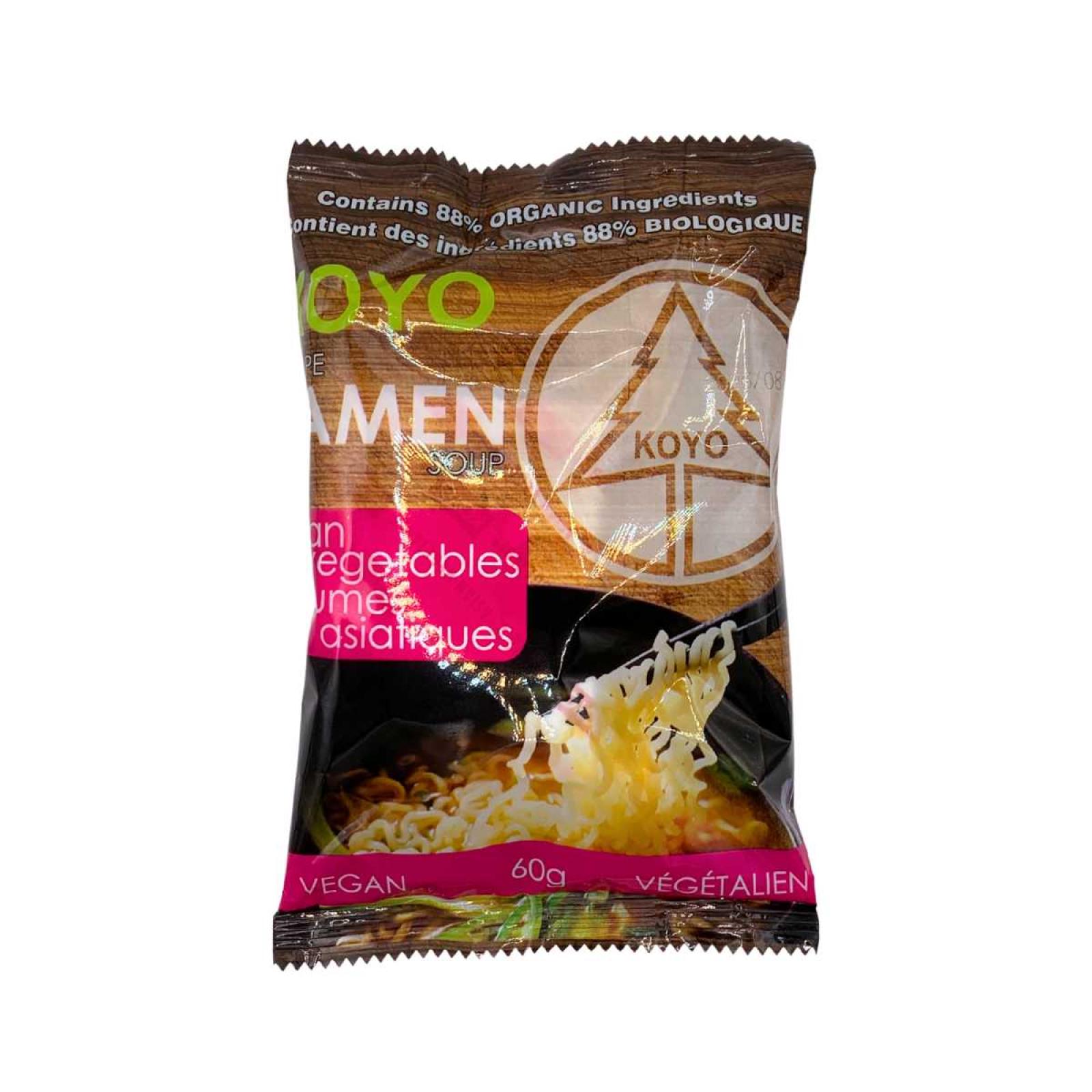 Un bol savoureux, prêt en quelques minutes ! KOYO – Asian Vegetable Ramen offre des nouilles biologiques cuites au four (non frites) et un bouillon aux légumes asiatiques parfumé (champignons, kombu, gingembre, poivrons…). Format pratique 60 g, végétalien et Non-GMO Project Verified : parfait pour un lunch rapide ou une base à garnir.
