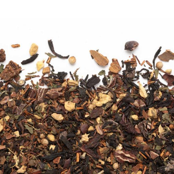 - Type : Mélange de thé noir et rooibos, aromatisé aux épices, chocolat, fruits rouges et menthe