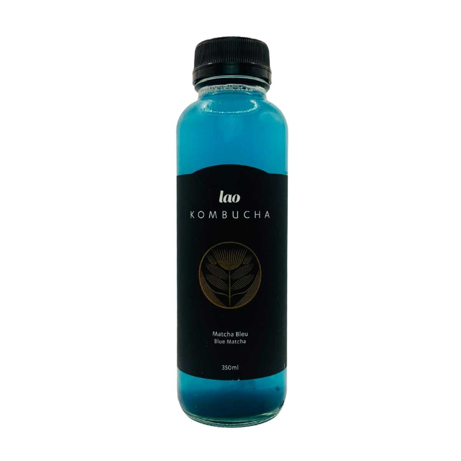 Eau filtrée, Kombucha fermenté par symbiose (cultures bactériennes et de levure)*, Sucre de canne*, Thé matcha*, Spiruline bleue, Dioxyde de carbone.