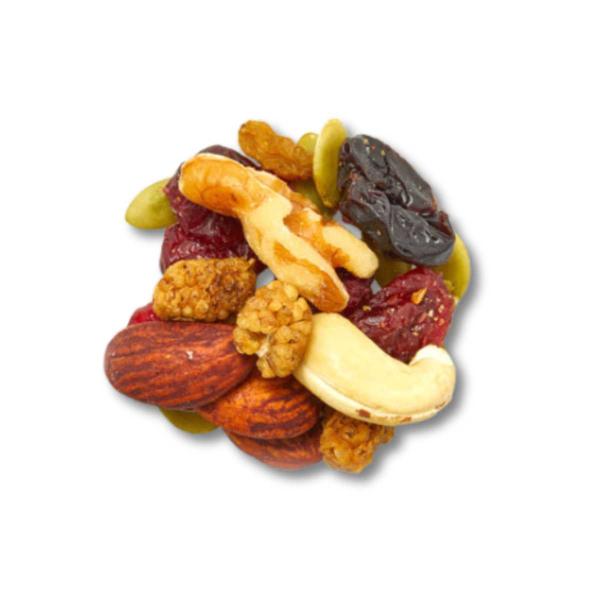 - Fibres : fruits séchés + graines → satiété & soutien digestif.