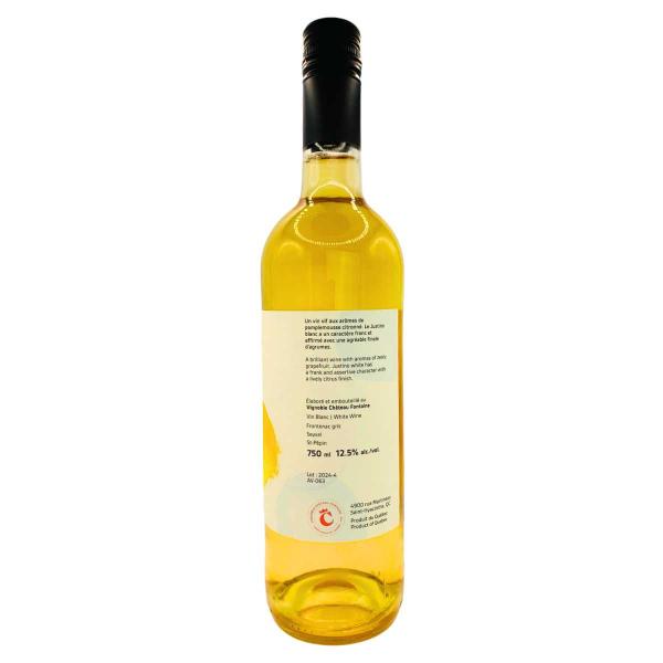 Blanc sec, droit et lumineux, JUSTINO! s’impose par un nez de pamplemousse et d’agrumes citronnés et une bouche franche, nerveuse, qui se prolonge sur une finale fraîche. Issu des cépages Frontenac gris et Saint-Pépin, ce vin de climat frais affiche 12,5 % alc./vol., ~2 g/L de sucre, et une certification IGP Vin du Québec (Ecocert). Servi 10–12 °C, il excelle à table avec poissons, fruits de mer, volailles, lapin et fromages de chèvre.