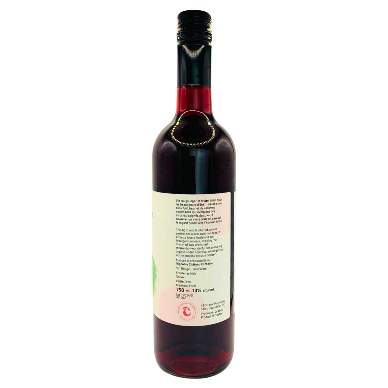 - Assemblage : Frontenac noir + Maréchal Foch — deux variétés parfaitement adaptées au climat frais québécois.