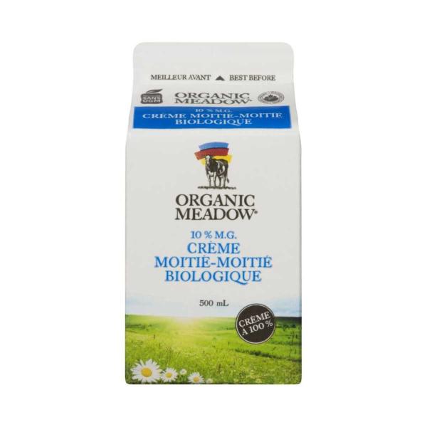 Crème à 10 % matière grasse, biologique, pasteurisée et faite avec du lait 100 % canadien. Ingrédient unique : crème biologique (lait). Texture lisse et stable qui nappe bien le café, les sauces et les desserts minute. Format pratique 500 mL.