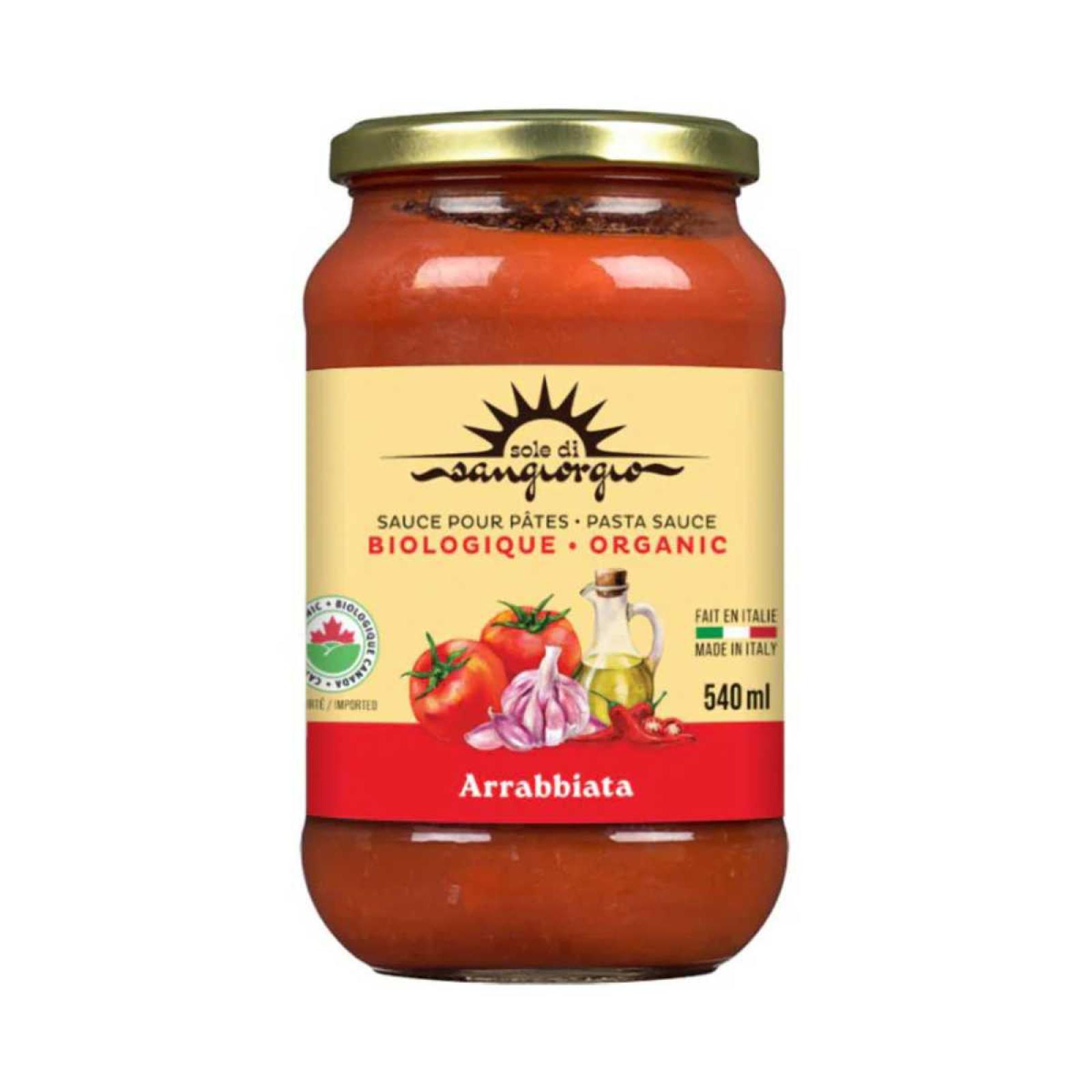 Étiquette courte, typique d’une Arrabbiata italienne : tomates, huile d’olive, ail, piment, sel (certifiée biologique). Pour les valeurs nutritionnelles précises, se référer au pot; la sauce à la tomate demeure naturellement source de lycopène (antioxydant), avec un apport modéré en lipides provenant de l’huile d’olive.