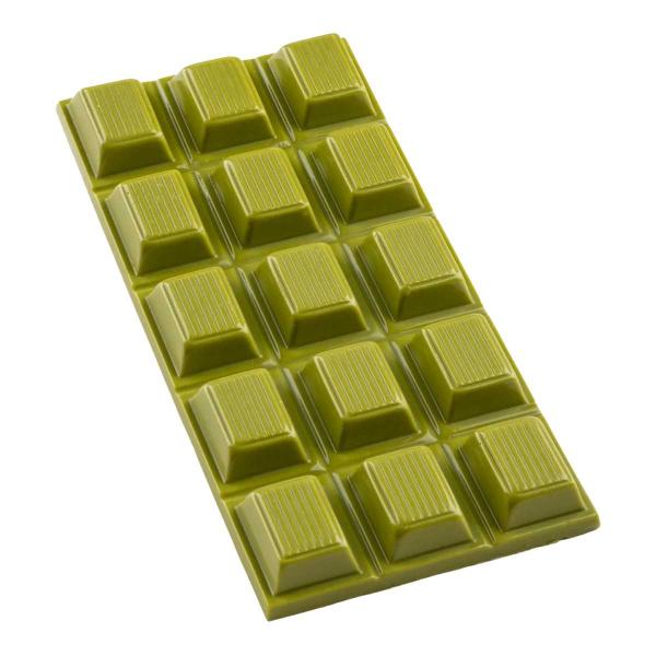 Ingrédients : chocolat blanc (sucre de canne†, beurre de cacao*†, lait entier en poudre†, vanille naturelle*†)*, poudre de thé vert matcha†.