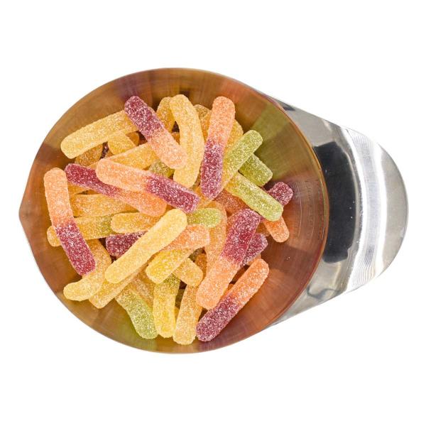 De jolis bâtonnets gélifiés au sucre, tendres et acidulés, élaborés avec des ingrédients issus de l’agriculture biologique et colorés naturellement par des concentrés de fruits et de plantes. Parfaits pour les fêtes, les bar à bonbons, Halloween ou pour garnir desserts et collations.