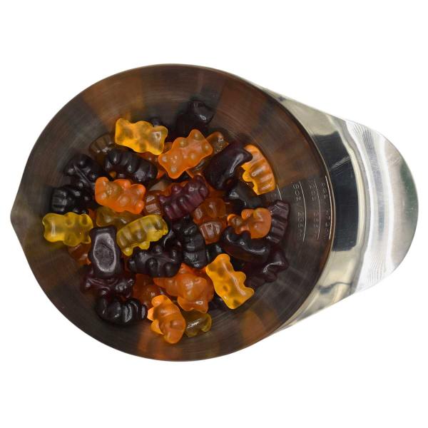 Des petits oursons translucides, tendres et fruités, gélifiés à la pectine (zéro gélatine) et colorés par de vrais concentrés de jus. Profil sucré-acidulé (pomme, orange, citron, ananas, framboise, cassis). Format généreux ≈ 5,51 lb : parfait pour fêtes d’enfants, bar à bonbons, cafés et cadeaux.