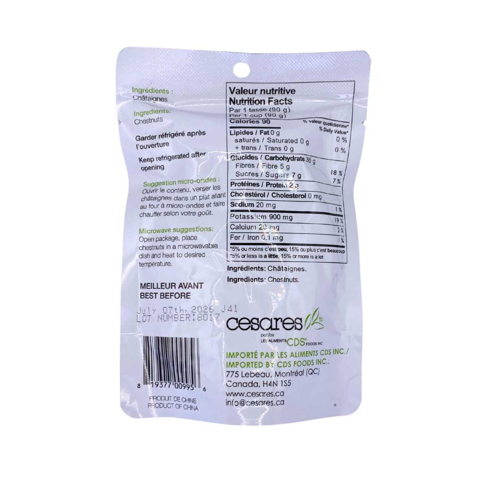 Origine du produit : Chine. Importé par Les Aliments CDS inc. (Cesares) – Montréal, QC.
