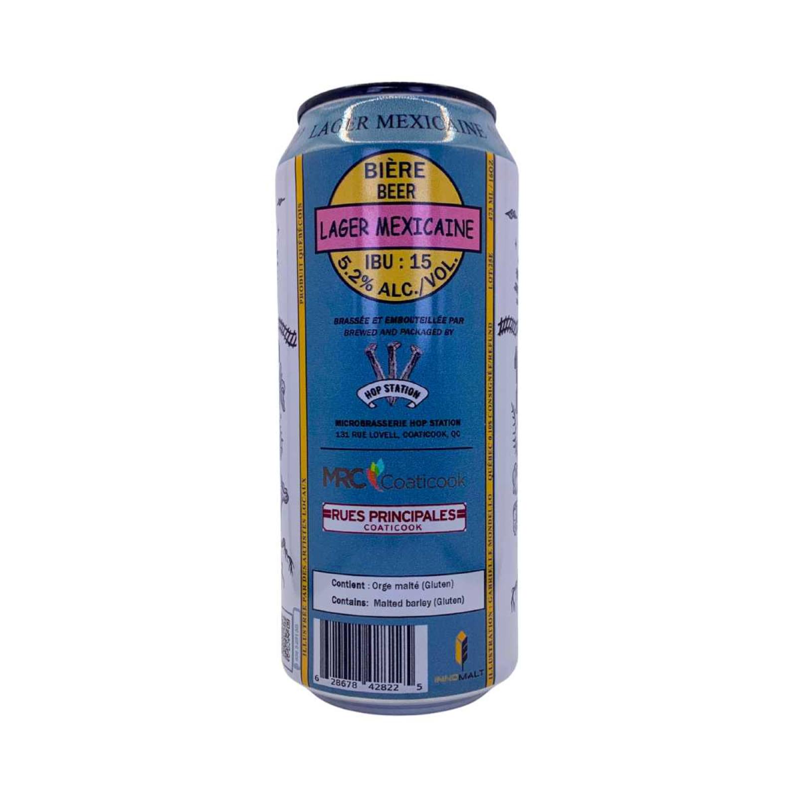 Une lager mexicaine rafraîchissante et légère en amertume (15 IBU), titrant 5,2% alc./vol., brassée et embouteillée par Microbrasserie Hop Station au 131, rue Lovell, Coaticook (MRC de Coaticook, Estrie). Pensée pour la buvabilité, elle met de l’avant des céréales bien croquantes, une finale sèche et une pointe citronnée qui rappelle les lagers de soif d’Amérique latine.
