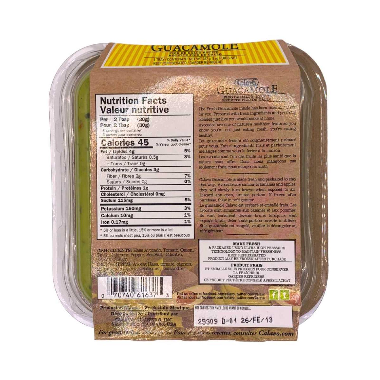 Guacamole prêt-à-servir, préparé avec des avocats Hass bien mûrs et relevé façon pico de gallo (tomate, oignon, jalapeño, coriandre, sel de mer). Texture onctueuse, piquant moyen, goût frais comme à la maison. Barquette 227 g (8 oz), à garder au froid.