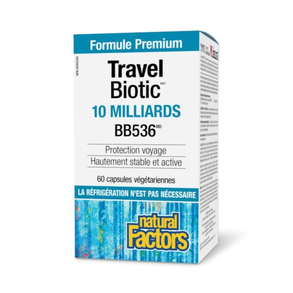 Le Travel Biotic BB536 de Natural Factors est un probiotique de voyage spécialement formulé avec la souche Bifidobacterium longum BB536, l'une des souches probiotiques les plus étudiées au monde avec plus de 200 publications scientifiques à son actif. Chaque capsule végétarienne à enrobage entérique fournit 10 milliards d'UFC, offrant un soutien ciblé du systÚme digestif et immunitaire lors des déplacements, changements de routine alimentaire ou décalages horaires.